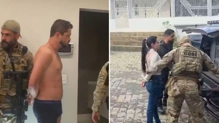 Os presos foram identificados como Bruno Soares Mendonça, de 37 anos, conhecido como “Leite Ninho”, e Barbara Alves, de 34 anos. Eles foram localizados em uma residência de luxo em Baixo Guandu, no Noroeste do Estado.